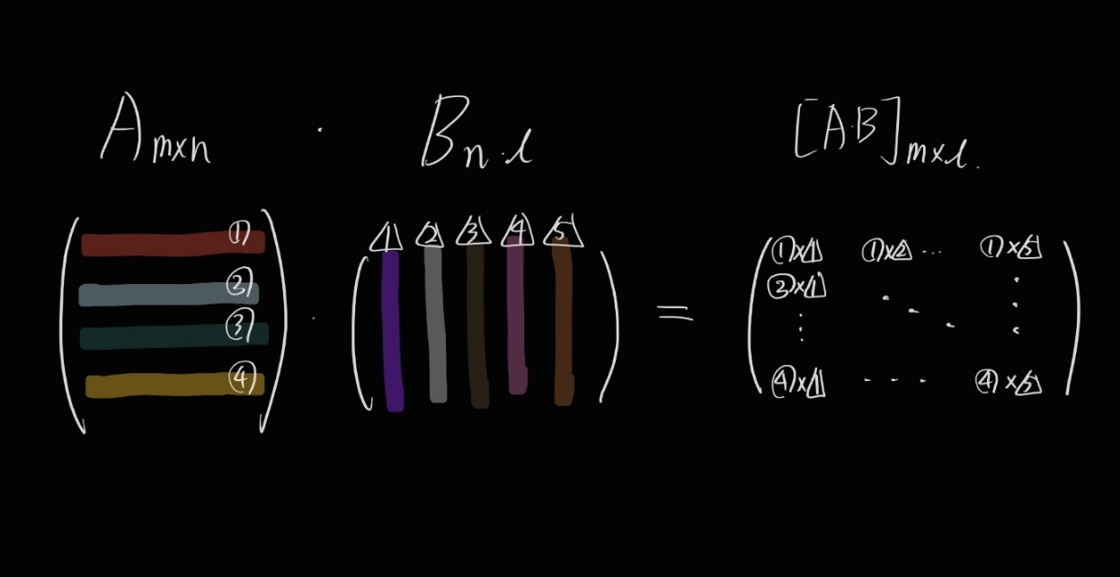 그랬을 때 연산 결과의 매트릭스는 m개의 row와 l개의 column을 갖게 됩니다.