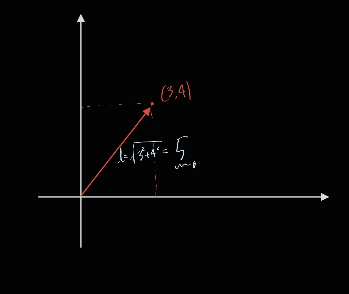 좌표에 평면 벡터를 표시해 보면 크기가 5인 것을 알 수 있습니다.