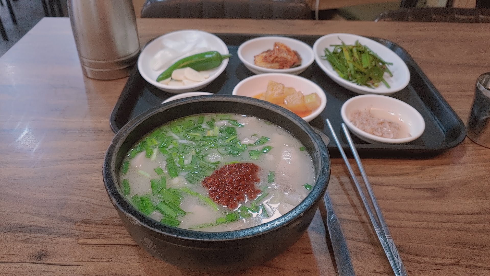 아무튼 3분 거리 안짝에 아주머니께서 한가로이 양파를 까고 계시던 24시 국밥집을 찾아내었다. 조심스레 지금 식사 가능한지 여쭙고, 감사의 탭댄스를 추며 돼지국밥 한 그릇을 부탁드렸다.