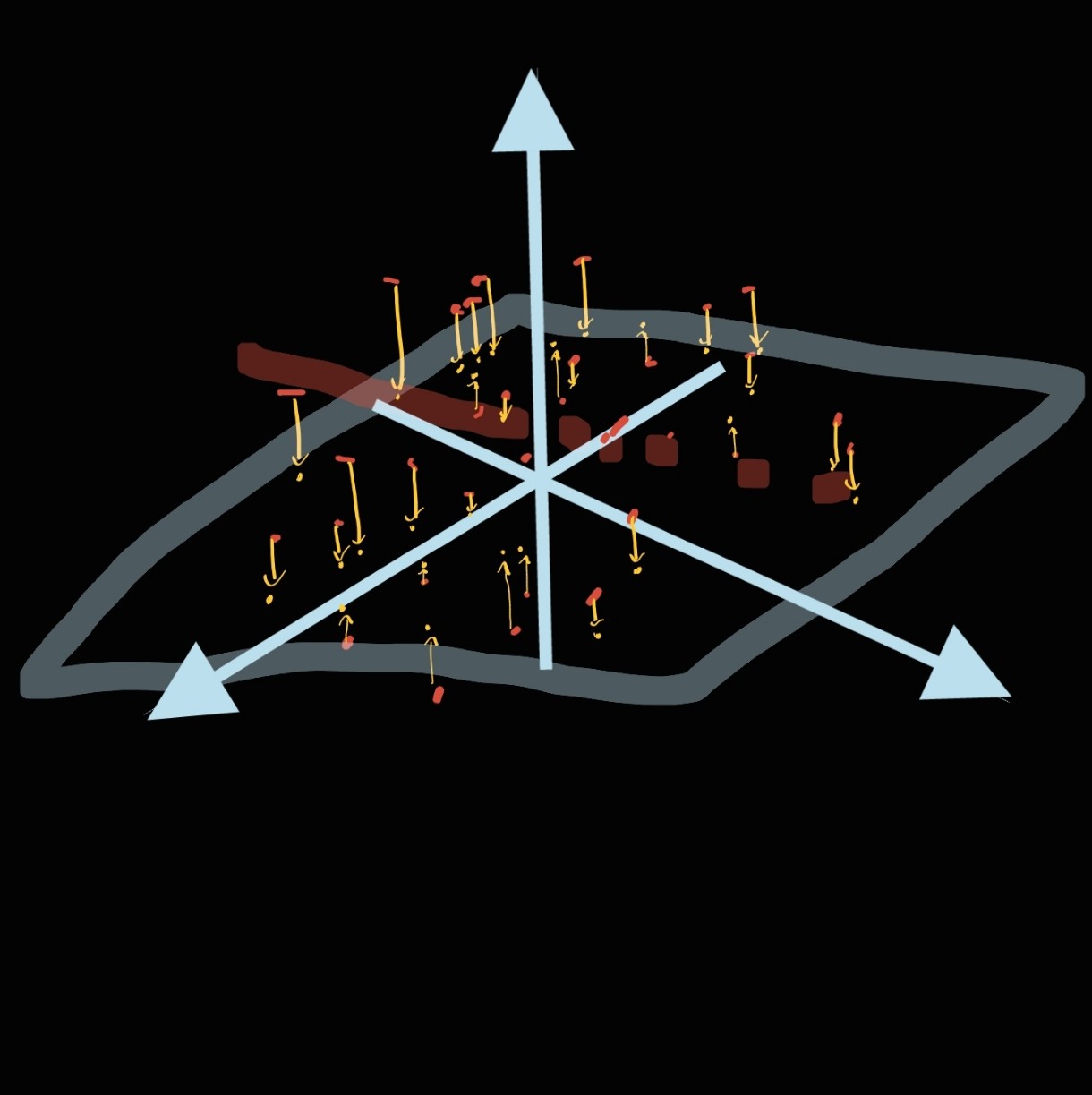 그래서 보라색 평면을 위에서 내려다 보면 아래와 같은 분포를 얻어볼 수 있겠는데요,