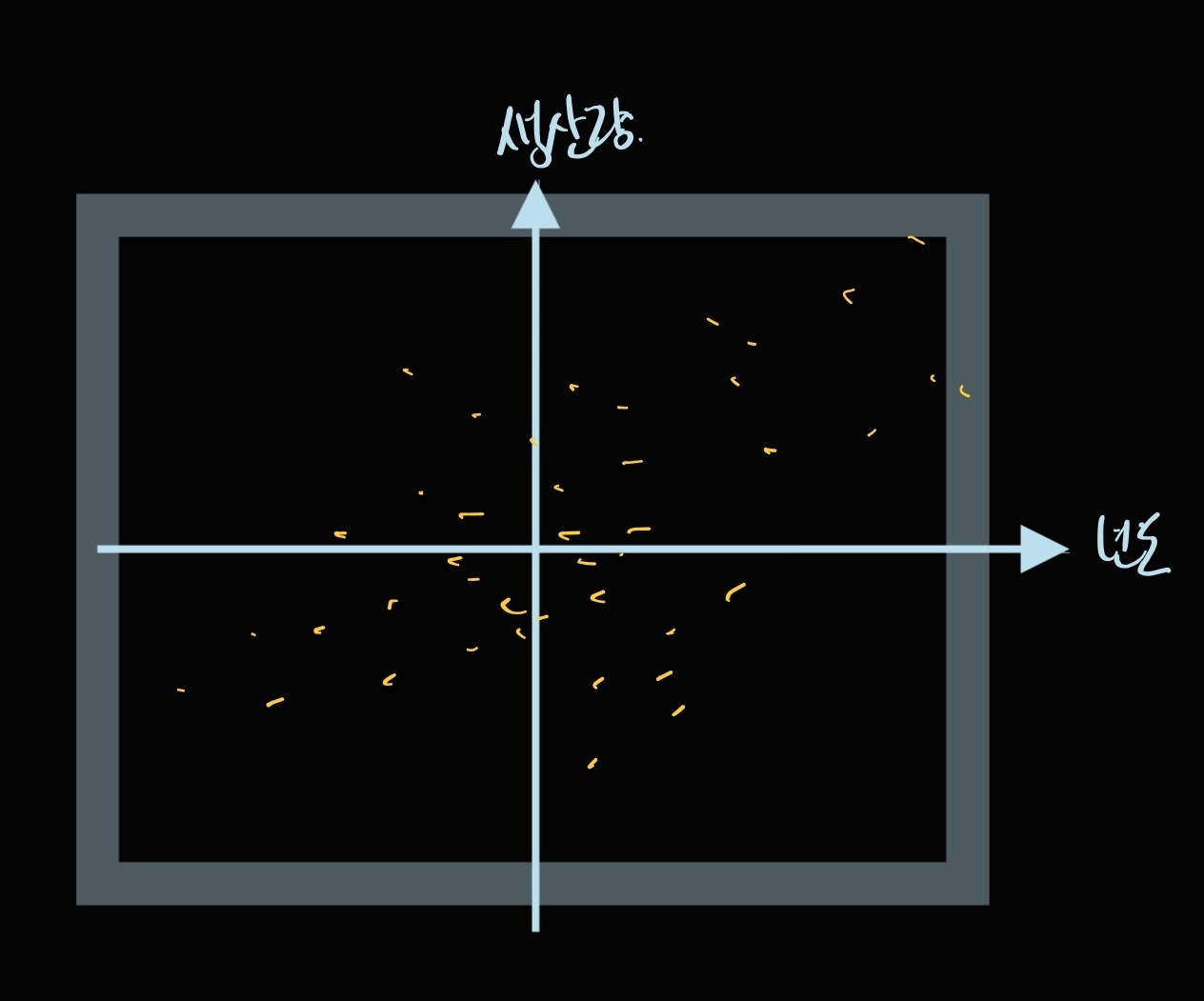 이렇게 3차원 공간에 흩뿌려져 있을 겁니다. 아 똑바로 좀 그리지 알아보지도 못하겠구만 이게 뭐야.