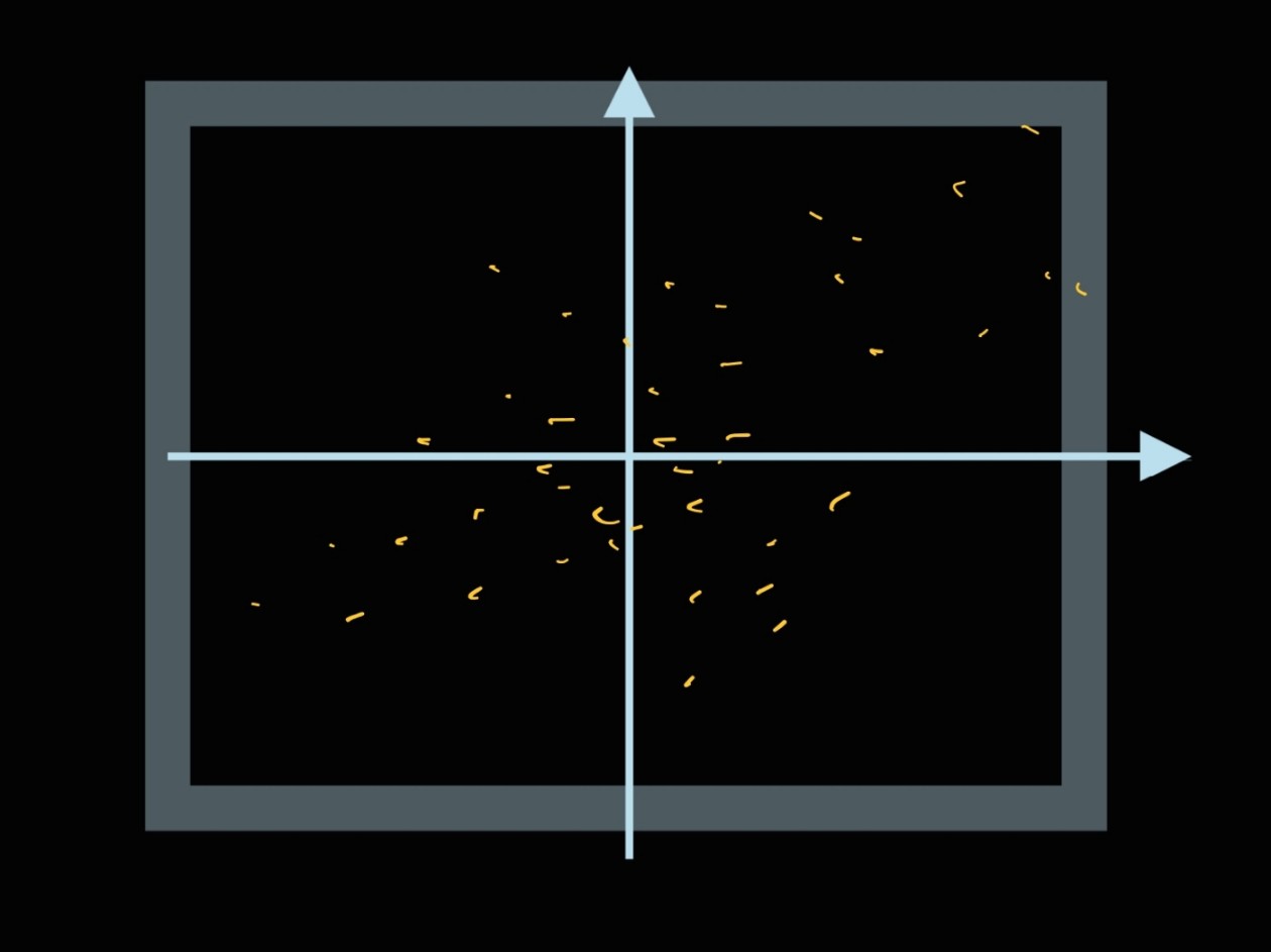 저는 이 점들을 xy 평면으로 프로젝션 시켰습니다. 그럼 이때 나오는 데이터는,