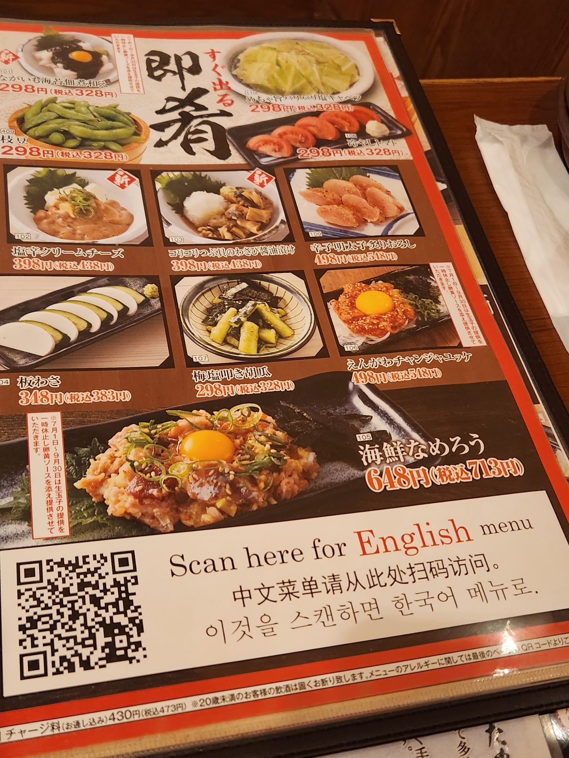 어차피 메뉴는 카이센동과 나마비루 (생맥주. 일본 식당 필수 레퍼토리로 꼭 알아가야 할 회화로 "나마비루 구다사이"가 있다) 로 결정하고 들어왔지만, 차분히 몇 페이지에 빼곡히 적혀 있던 다른 메뉴들도 살펴봤다.