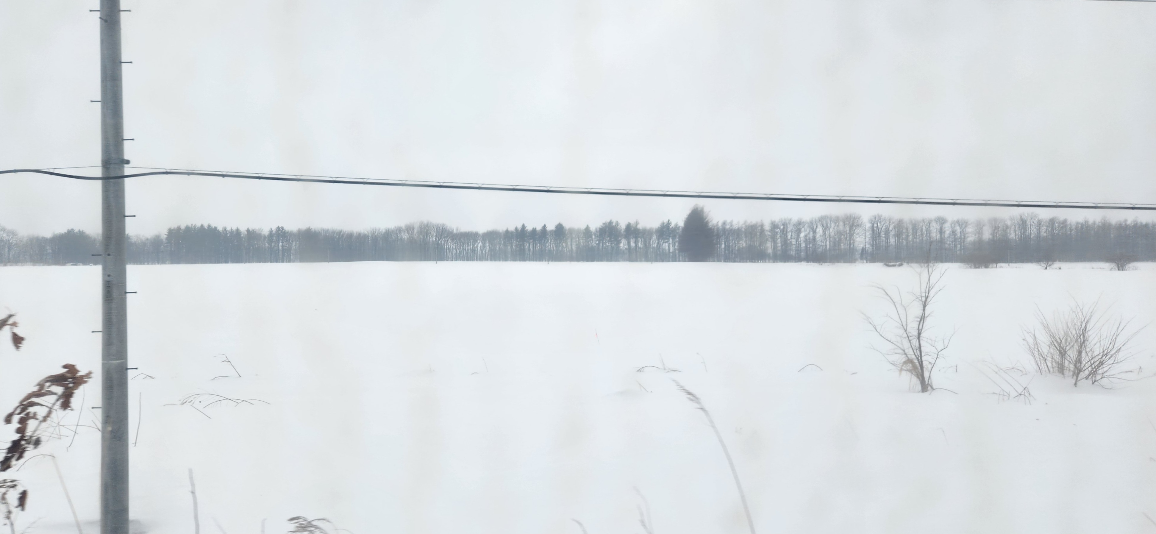 출발 후로 30분 정도 지나 미나미치토세 역이었나, 아무튼 그 근처를 지나고 나니 본격적인 홋카이도의 설원이 펼쳐졌다.