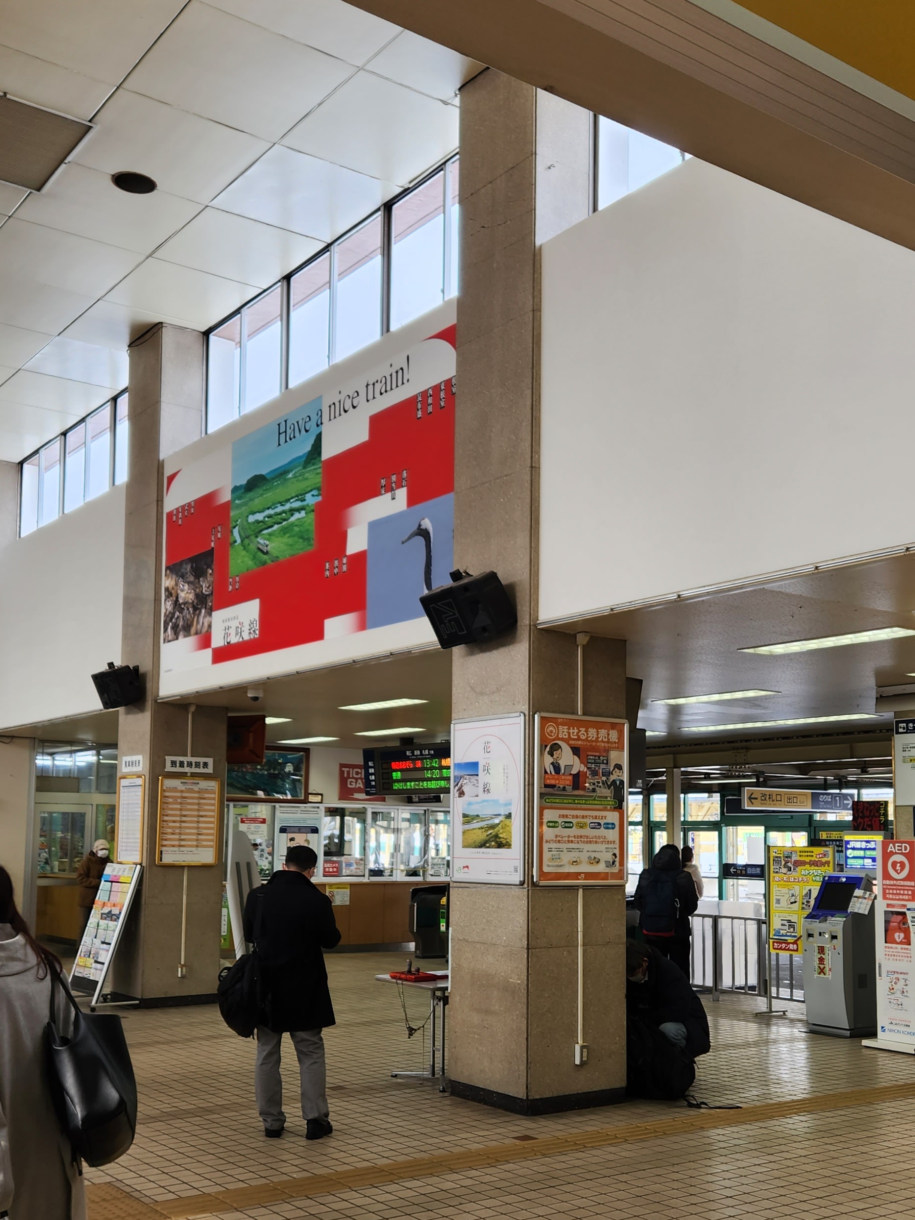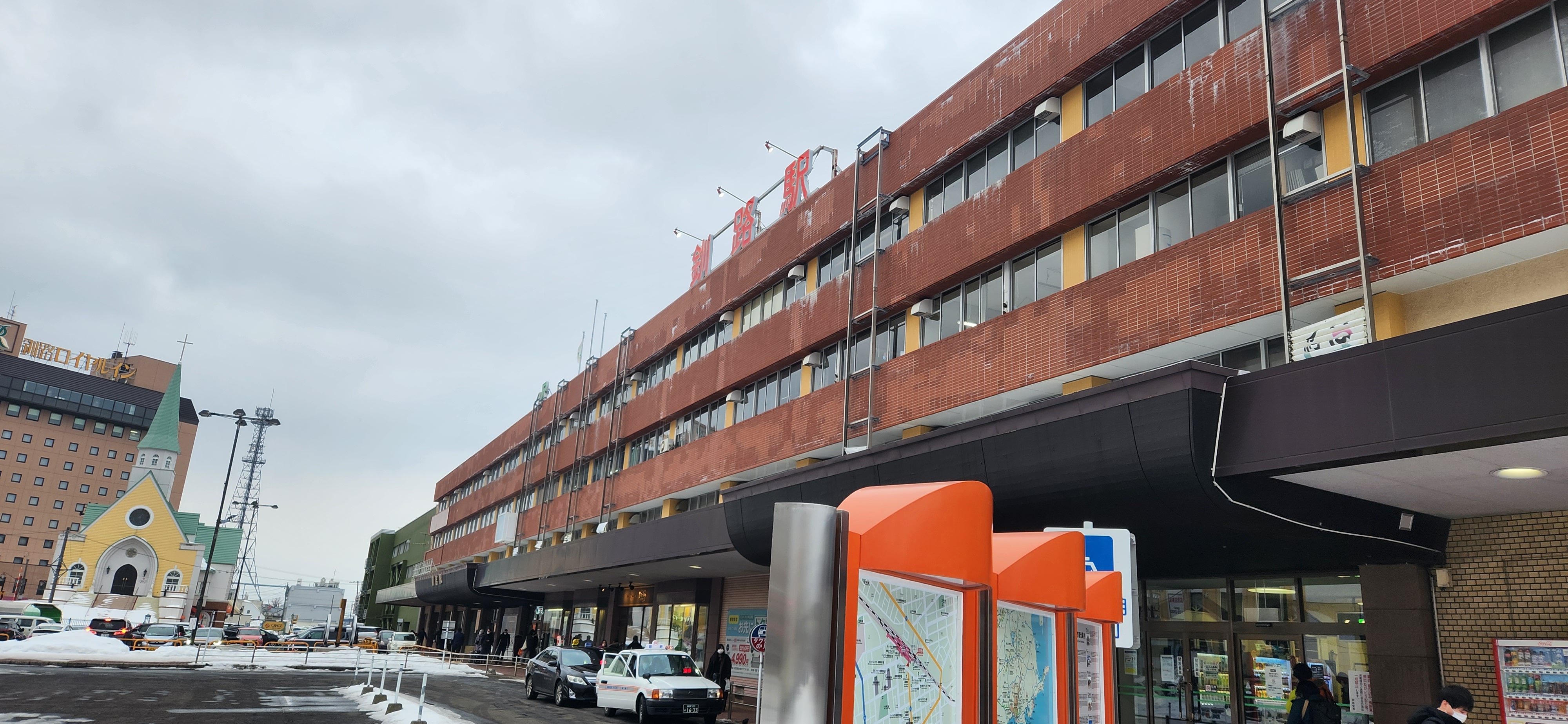 옆자리 외국인 커플과의 4시간이 넘는 불편한(?) 동행 끝에 구시로 역에 도착했다.